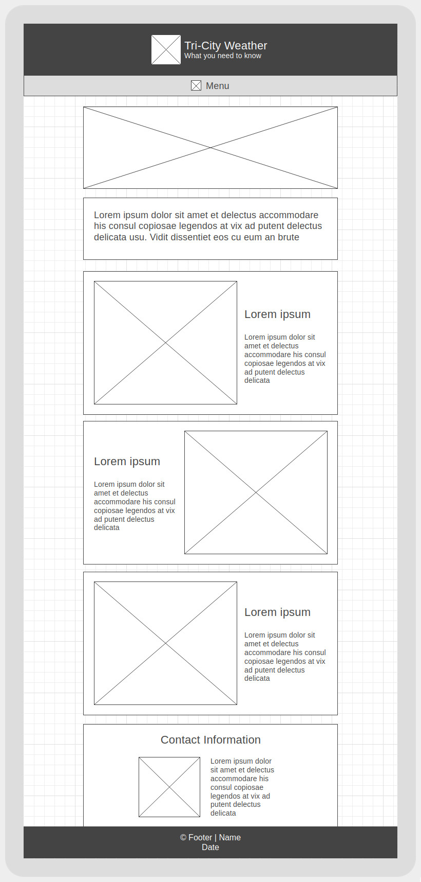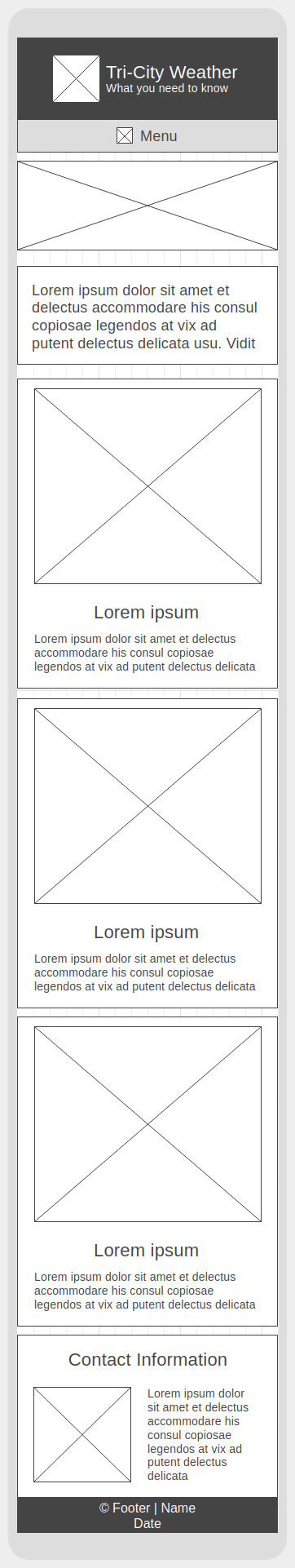 Deviations from wireframe: no padding around images to match hero image, images 50% width on tablet so there isn't too much vertical spacing around the text, images at bottom of vertical sections because the text is the important part, and town section flexbox matching width of main on desktop.